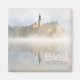 Fotoímã de Souvenir com um nascer de sol embaçado no lago Bled com reflexo da ilha com a igreja na água do lago e com o Castelo Bled ao fundo num belo dia de outono na Eslovênia com o texto "Bled, Eslovênia".