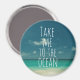 Leve-me à Tipografia das Cotas Oceânicas. A bela cena da praia, retrorada, com tom azul (oceano, areia, céus) enquadra a citação divertida/dizendo "me leve ao oceano". Excelente para os amantes da praia ou qualquer um que absolutamente ama o oceano. Relaxe, relaxe e fuja.