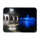 O porta-aviões da WWII, o Lexington, à noite, na baía de Corpus Christi, com um mirador branco (zona de visitantes)