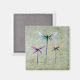 Bonito ilustração de cor d'água original de libélulas fofinhas em cores diferentes contra um fundo rústico.