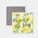 Íman bonito com limões de aquarelas na design de galhos folheados e a frase "Apertar o dia".