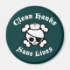 O crânio de uma enfermeira bonita e o emblema pirata da bússola, com "Mãos Limpas salvam vidas" em letras góticas.