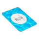 Íman monograma com fotografia de água azul clara de piscina, com reflexos brilhantes. Um círculo branco colocado sobre o topo com seu nome e dentro inicial.