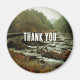 Um obrigado que você imprime com uma fotografia da natureza. Paisagem magnífica e bonita. Uma ponte de pedra isolada ao lado de um rio vivo com uma floresta e montanhas ao redor da área.