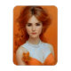 Uma linda mulher de cabelos longos vestida de laranja e branco com um estilo de pintura de retrato laranja