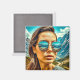 Imã Linda Mulher na Reflexão de Montanha dos Óculos So