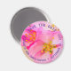 Três novas flores sakura, recém-nasceres - cereja japonesa floresce em um galho fino contra o impressionante fundo rosa. Jardim de cereja no pico de Hanami - assistindo sakura - estação. Uma pintura digital de uma fotografia. Um ímã redondo festivo e colorido. Personalizável. Você pode alterar a imagem e pode alterar ou excluir dois textos de modelo: SALVAR A DATA e ELIZABETH E CHRISTOPHER * 12 DE SETEMBRO DE 2021. Você pode transferir este design para uma variedade de outros produtos de sua escolha. Utilize o botão "Editar Design" para ajustar a imagem à forma do produto específico. Ele o transferirá para a Ferramenta Designer. Use a opção "Ajustado/Preenchimento" (menu do lado direito da Ferramenta Designer). Você pode dimensionar, girar, sacudir a imagem no modelo do produto e pode adicionar algum texto próprio a ela. Você também pode alterar o tipo, a cor, a curvatura e o local da fonte. Seja criativo, comprar, divirta-se e seja feliz!