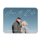 Dê aos seus hóspedes uma maneira única de se lembrarem de sua próxima data de casamento com nosso Linda Script para salvar os ímãs de fotos. A imã salve a data exibe sua foto de noivado favorita com "Salvar a data" em uma camada de fontes moderna de script de caligrafia. Personalize as imã salve o dia de chic adicionando seus nomes, data de casamento e cidade/estado de seu local de casamento.