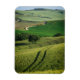 Magneta de souvenir vertical, com quase abstrato, com linhas verdes curvas nos campos de cevada entre Pienza e San Quirico d'Orcia, no Vale de Val d'Orcia, na Toscana, Itália.