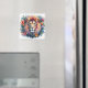 O ímã apresenta trabalho de arte de aquarela de um leão em um cenário botânico com sotaques de flores. O feroz rei da selva está virado para a frente num retrato que destaca o poder e a beleza da natureza. Excelente para grandes amantes de gatos e zodiac Leos!
