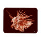 Esboço a lápis colorido: o lionfish vermelho é folheado em tiras brancas alternadas com vermelho, marrom ou marrom. Os adultos podem crescer até 17 polegadas (43 cm) de comprimento, enquanto os jovens podem ter menos de 1 polegada (2,5 cm). Eles podem viver até 10 anos. O peixe tem grandes espinhas venenosas que se protuberam do corpo como um homem, dando-lhe o nome comum do lionfish.