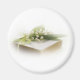 Lily bonita do vale descansando em uma Bíblia sagrada. Personalizável com o seu texto. Perfeito para um casamento, salvo a data ou qualquer ocasião especial.