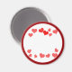 * Little hearts on this magnet with a red border. The border can be removed and the hearts can be resized to fit your custom text message or a photo. Round magnets are available in three sizes and square shape is also available. *