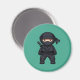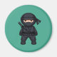 Adorable chubby yet fearsome looking little ninja is dressed in black outfit and carrying katana - traditional Japanese sword.