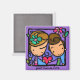 O primeiro amor de LittleGirlie será sempre o melhor. Garotinha e um garotinho segurando um coração entre eles com sotaques florais. Pintado para se assemelhar a vidros manchados em cores luminosas de pinks, verdes e chaleiras. Flor no cabelo. Namorados.