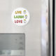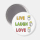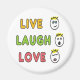 Live Laugh Love expression illustrated with the words plus faces - living, laughing and loving. A fun design to smile along with.