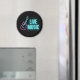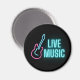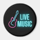 O ímã de cozinha divertida para músicos e amantes de música apresenta texto de neon "Live Music" com contorno de guitarra rosa e aqua.