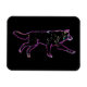 Uma representação neon de um lobo em um fundo preto inspirada pelas Luzes do Norte.