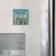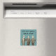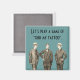 Este ímã apresenta uma imagem vintage de três homens bem vestidos, em um fundo teal, com o texto, "Vamos joga um jogo de encontrar minha tatuagem."