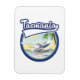 Logotipo da viagem da Tasmânia com uma bela aeronave leve e palmeira.