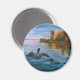 De uma pintura de óleo original de Brenda Thour de dois leões em um lago ao pôr do sol com um luo batendo suas asas. Copyright de Brenda Thour 2004.