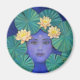 Um rosto bonito olha de uma piscina de lótus. É um espírito de água, uma Deusa, ou é seu reflexo...Reproduzida a partir do pastel original por Sue Halstenberg, PSA.
