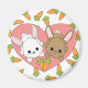 Coelhos adoráveis apaixonados, com um presente especial de cenoura em forma de coração, eles certamente aquecem seu coração. Uma escolha maravilhosa para Dia de os namorados, um casamento, Noivado, aniversário, Páscoa ou qualquer vez que você quiser sentir o amor coelho!