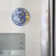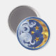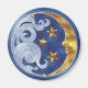 Lua adorável e estrelas com nuvens enroladas desenhadas com efeito de vidro manchado em azul e ouro.