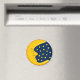 Lua-de-sono amarela-clara cercada por muitas estrelas amarelas num céu azul-da-noite.