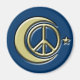 Um belo ouro gravou a imagem de uma lua crescente em torno de um símbolo de paz e de uma estrela ao seu lado. A cor de fundo pode ser alterada para qualquer uma das mais de 200 cores.