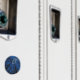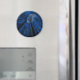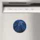 Esta design apresenta uma bela imagem de uma lua de cheio atrás de árvores altas. O céu é azul escuro.
