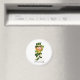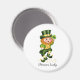 Gnomo verde para sempre bonito segurando um trevo e um ouro confetti em fundo branco. O texto pode ser personalizado. Texto apenas no lado frontal.