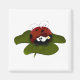 Imagem de animação de ladybug adorável. A joia vermelha e preta está sentada sobre um trevo. Personalizar alterando a cor de fundo.