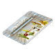 Comidas saudáveis que lutam contra comidas não saudáveis para a dominação nutritiva do frigorífico sob o olhar atento dos ovos neutros num ímã de geladeira