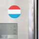 Bandeira do Luxemburgo. A bandeira do Luxemburgo (luxemburguês: Lëtzebuerger Fändel, alemão: Flagge Luxemburgs, francês: Drapeau du Luxembourg) é constituída por três riscas horizontais, vermelhas, brancas e azuis, e pode ser expressa em 1:2 ou 3:5. Foi usado entre 1845 e 1848 e adotado oficialmente em 23 de junho de 1972. O Luxemburgo não tinha bandeira até 1830, quando os patriotas foram instados a exibir as cores nacionais. A bandeira foi definida como um tricolor horizontal de vermelho, branco e azul em 1848, mas só foi adotada oficialmente em 1972. A bandeira tricolor é quase idêntica à dos Países Baixos, exceto que é mais longa e a sua faixa azul é mais leve. A coloração vermelha, branca e azul derivou da casaco de armas do Grão-Duque, que data do século 13.