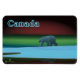 Um urso polar vagueia o gelo durante a longa noite polar; o Norte brilha em vermelho e verde à distância. A leitura de texto "Alaska" em azul e branco brilhantes também é exibida.