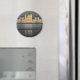O edifício do parlamento húngaro é, provavelmente, o marco mais reconhecível na capital Budapeste. Esta fotografia a preto e branco apresenta as luzes amarelas desta notável arquitetura iluminada à noite, com vista para o rio Danúbio. O presente perfeito para você ou outra pessoa marcar uma viagem a esta incrível cidade. Este ímã é totalmente personalizável e fabuloso!