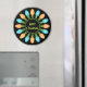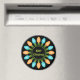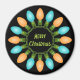 Este ímã de Natal apresenta texto personalizado e um gráfico colorido que mostra um círculo de lâmpadas festivas de Natal em azul e laranja.