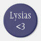 Um crachá azul "Lysias". Lysias foi uma antiga escritora grega de discursos, cuja obra inclui "Sobre o Assassinato de Eratosthenes". Quem tiver estudado a antiga lei grega terá ouvido falar dele e lido alguns dos seus trabalhos sobreviventes.