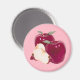 2 Maçãs com 2 fatias de maçã sobre fundo vermelho marcado estão neste ímã. Excelente para o amante da maçã.