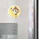 Um macaco muito fofo e kawaii segurando uma banana, o fundo em tons amarelos e padrão de banana. Em um ímã