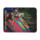 Foto cativante de um macaco Macque, metido num pilar na base das vibrantes escadas coloridas pelo arco-íris, levando ao famoso templo das Cavernas de Batu na Malásia. Esta imagem única combina perfeitamente um momento da natureza com um marco cultural icônico, fazer-a um ímã ideal para enviar a um amigo ou guardar como uma lembrança única. É uma maneira excelente de compartilhar um pedaço da sua aventura viagem com os outros.
