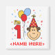 A diversão do primeiro aniversário "Eu tenho 1" com o rosto de macaco legal, grande número 1 e balões coloridos. Se você ama a selva, safari e animais de zoológico você vai amar esse macaco em um chapéu de aniversário.