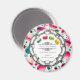 Um ímã com design de aquarela rico de macarões franceses doces e deliciosos em formação circular. No centro está uma moldura decorativa que diz yums a palavra. O texto pode ser personalizado com seu nome, nome comercial ou o que você quiser. Os macarões são pintados em muitas cores bonitas como rosa, azul, verde limão, amarelo ensolarado, vermelho, roxo etc..