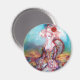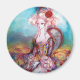 Elegante, colorido, elegante e design único em cores brancas brilhantes, vermelhas, cor-de-rosa, azuis. Bonita personagem loira sofisticada, tecidos brilhantes de uma fantasia barroca com rosa vermelha. Pintor aquoso original e acrílico com folha de ouro e cores iridescentes na canvas