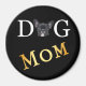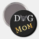 Um design gráfico divertido para Mães de Cachorro que adoram Cachorros Franceses. O texto DOG com uma foto de um francês substituindo o O e o MOM abaixo em uma fonte dourada e brilhante.