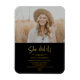 Imprima com esses ouros de escrita química de caligrafia cardíaca, classe de 2022, ímãs de convites de festa de formatura sobre fundo preto. Personalize facilmente com seus detalhes importantes na frente e sua foto na parte traseira do cartão. Ideal para eventos de mais velho alto e colegial.