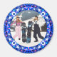 Imagem de Natal feliz e feliz Imagem de Imagem Redonda de Imagem de Natal. Uma imã de geladeira circular colorida e brilhante. O quadro design é uma abstração geométrica que toma designs festivos tradicionais. No inverno, as cores azul, rosa e branca. Substitua a foto pela sua para um presente de gafanhoto para a família e amigos celebrarem o Natal. Tome suas memórias de Yuletide.