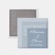 Simples e moderno ímã de casamento 'SALVAR NOSSA DATA' para noivas que estão adorando suas cerimônias em azul empoeirado moderno. Tudo definido em uma fonte branca moderna com iniciais laterais.