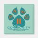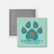 Um ímã quadrado com o logotipo comunitário PAWS 4 sobre um fundo verde-menta